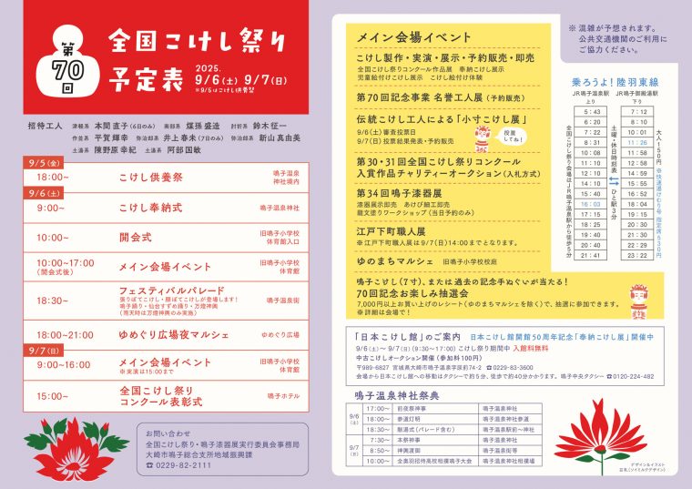 第70回全国こけし祭り・第34回鳴子漆器展当日スケジュールについて